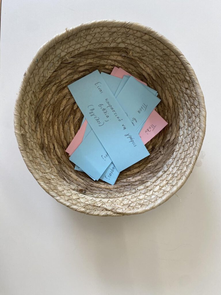 Ο τρόπος που προσεγγίζουν οι φροντιστές της Φτερωτής την σχολική κοινότητα είναι η οργάνωση ενός πάρτι. Ακολουθώντας την προτροπή της Χριστίνας (εδώ το λινκ από το πακέτο δραστηριοτητων https://drive.google.com/file/d/1DpN-lDD0oUsvjIw1dsNlsITAmgsLqByO/view), όταν φτάσαμε στο σημείο αυτό σταματήσαμε για να κάνουμε ένα δημοψήφισμα. Εμείς θα πηγαίναμε στο πάρτι; Ναι ή όχι; Ευκαιρία να εξασκηθούμε στη γραφή του όχι που είναι στην πρώτη μας ενότητα της Γλώσσας. Ευκαιρία να δούμε πως τα παιδιά δεν έχουν κανένα