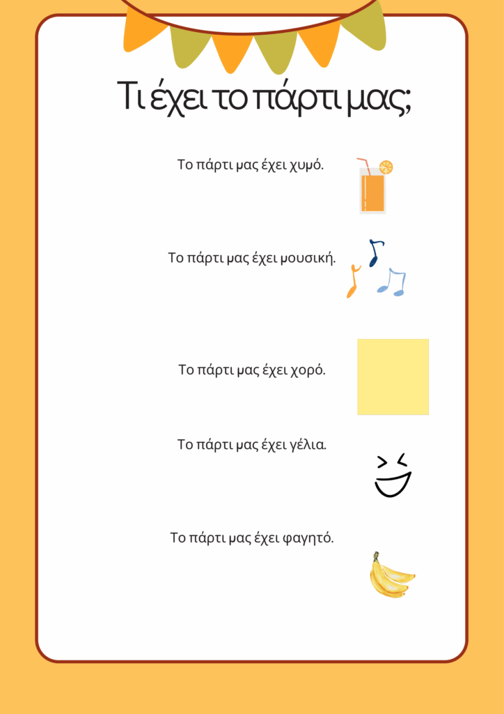 Εξασκηθήκαμε στην ολική αναγνώριση της λέξης «έχει» μέσα από προτάσεις που έχουν νόημα για την ομάδα, όπως η πρόταση «Το πάρτι μας έχει φαγητό;»