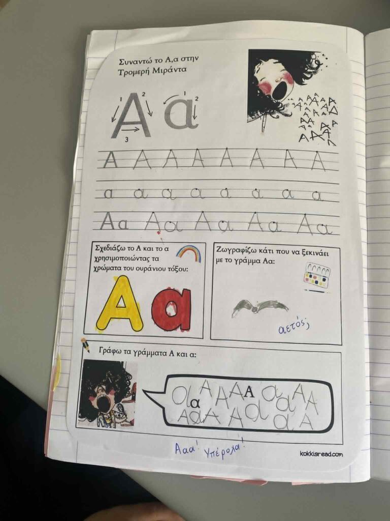 Το πρώτο γράμμα που μαθαίνουν τα παιδιά στην Α’ τάξη είναι το Α. Αντί να το προσεγγίσουμε μέσα από το σχολικό βιβλίο συναντούμε το Α σ’ ένα εικονογραφημένο βιβλίο. Σε μια ιστορία με νόημα, αισθητική, συναίσθημα. Σε μια ιστορία με την οποία θα ταυτιστούν, από την οποία θα εμπνευστούν.